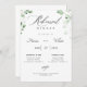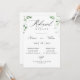 Délicate invitation à dîner de répétition mariage avec eucalyptus et une police d'écriture exquise.