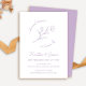 Une invitation simple et douce à dîner de répétition. Comprend des éléments botaniques dessinés à la main dans une couleur lilas étonnante. Reportez-vous aux autres éléments correspondants de la collection Mariage Fleur sauvage.