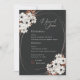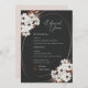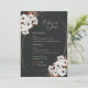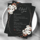 Ces invitations à des dîners de répétition de 5" x 7" mariage, présentent une belle décoration florale dans les tons noir, rouille et ivoire avec accentuation des formes ovales sur un arrière - plan noir. Espace réservé aux noms de mariée et de mariée, détails du dîner de répétition et de répétition.