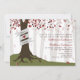 Une invitation à dîner de répétition mariage illustrant un arbre dans la forêt. Arbre a des feuilles dans différentes nuances de rouge, des racines apparentes, et un tronc enveloppé de bannière qui peut être customisé avec les noms de mariés et mariés. Personnalisez le texte avec les détails de votre occasion.