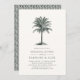 L'invitation à dîner de style plage vintage comprend une illustration de palmier gravé en vert chasseur noirci, au-dessus de vos détails mariages en gris charbon pour un look côtier chic. Pale des cartes d'invitation en ivoire blanc cassé à un motif tressé en chaume. Nous vous recommandons d'imprimer ce style sur le papier Laid traditionnel pour une texture riche qui complète le look vintage de cette invitation à dîner de répétition.