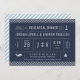 Cette invitation à dîner de répétition de mariages nautiques en blanc et bleu présente des icônes à thème de la côte Est comme un phare, voilier, ancre et baleine. Parfait pour un mariage de la Nouvelle-Angleterre sur la côte !