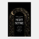 Améliorez votre dîner de répétition avec un élégant panneau de bienvenue céleste noir et or. Accueillez vos invités avec une illustration en arc de nuit étoilée dorée, méticuleusement dessinée en acrylique, pour ajouter une touche moderne à votre décor. Cette enseigne chic et brillante, intitulée "La nuit d'avant", non seulement donne une ambiance enchanteresse, mais offre également un accueil chaleureux et mémorable. Commencez vos festivités mariages mystiques bohèmes avec style avec cette pièce polyvalente qui assure "Une journée loin" est vraiment inoubliable.