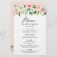 Dîner mariage Menu Chic Blush Rose Blanc Floral