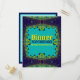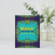 Utilisez ce modèle pour créer vos prochaines invitations à dîner. Avec espace pour écrire votre nom d'invité, pour une touche plus personnelle. Dentelle fractale Cartes postales de soirée dans les couleurs de bleu (foncé et clair) avec vert et jaune vif.