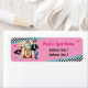 Fêtez votre prochain anniversaire spécial dans le thème intemporel du dîner des années 1950. Allez tout et créez ces mignonnes toilettes d'adresse de retour de diner customisé! Ils sont roses et noirs avec un juke-box classique et une fille et un gars. Invitation Central a également des invitations assorties et des étiquettes de faveur et d'autres imprimables de partie en 4 colorways. Conçu par www.invitecentral.com