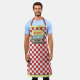 Create your own personalized, 1950's style diner sign apron using this simple template. This cool retro kitchen art has a slightly distressed red-and-white chequered background with a sign on top that says "DINER" and "OPEN" in neon with space for you to add your own first or last name. The sign also has a (faux) lighted arrow graphic. The colour scheme is red, white, yellow, and teal blue with some grey and black. This cute apron is perfect for anyone with a 50s-themed kitchen. Just fill in the easy DIY template or "Customize Further" if you need to resize, rearrange or change text colours & fonts. DESIGN TIPS: You can also resize the checkers and resize / move / remove / recolor the yellow and black borders.