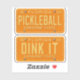 Two piece bonus sticker set! Travel back in time to the year 1969 with this retro-inspired Florida license plate design, created especially for pickleball fanatics. Bold embossed-look yellow text with the custom tag numbers "PICKLEBALL" and "DINK IT" pop on the orange contrast. The vintage style lettering, Sunshine State slogan, and panhead screws bring a nostalgic vibe. This unique pickleball sticker set is perfect for your cooler, car, laptop, water bottle, notebook and more! The 14x14 inch sticker sheet size will replicate a realistic plate sized sticker. Multiple sizes available.