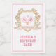 This wine label has a watercolor image of a crest surrounded by floral branches with green and pink gingham pickleball paddles in the centre. Text says "Dinks and Drinks." Colours used include moss green, blush pink and and tan. You can personalize with a name and birthday year.