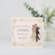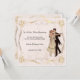 Gorgeous unique dinner and dance party invitation. Romantic image of a couple dancing. The gentleman is dressed in a black suit with tails and the lady is dressed in a cream coloured dress. This invitation is highlighted with gold effect borders with flowers in each corner. Easily customizable for you to add your own party details. Each dinner and dance party invite comes complete with a white envelope.