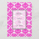 dinner menu card, pink,damask.for weddings, anniversary, engagement, graduation, meetings.