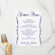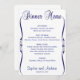 This elegant dinner menu in blue and white with a slight touch of glitter look can be customized. You can change the font and colours of most of the text and even the background colour. Designed by Amelia Carrie and sold exclusively through GlitterInvitations.com Note: This is a graphic print reproduction or artwork and contains no messy glitter.