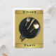 Golden Formal Dinner Party Invitation Template. Gold silverware and black dinner plate party invite. Customize your font, style, colours and food utensils images are resizable. Personalize your dinner invitation. Note: no actual gold metallic will be used in the design.