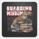 Dino- symbolizing ancient wisdom and guardianship, perched atop a stack of books, representing knowledge. The accompanying text, "Guarding Endless Wisdom," reinforces the theme of intellectual protection and timeless learning. This imagery appeals to book lovers, educators, and fantasy enthusiasts, making it suitable for various products such as t-shirts, notebooks, and posters.