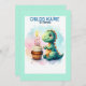 Cute Dinosaur holding a birthday cupcake