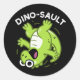 Dinosault Funny Dinosaur Pun Dark BG Classic Round Sticker