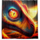 This shower curtain has a dinosaur pictured on it.