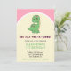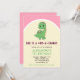 Imagine an invitation that sets the stage for a stompin' good time! At the centre, envision a cute girly green dinosaur beneath the charming text "She is a one-a-saurus," all against a delightful pink and yellow background. The colour cover is a sleek vibrant pink, promising an invitation that's as lively as your little girl's first birthday celebration! 🌟👶💕