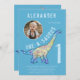 One-a-saurus Dinosaur 1st birthday party blue invitation with photo template for the boy who loves dinosaurs. This cute watercolor Brachiosaurus and pterodactyl flying dinosaur invite you to a fun dinosaur themed 1st birthday party. Personalize this dinosaur party blue invitation with a photo of the birthday boy, the number of the birthday and the party details and you are all set for a fun packed dinosaur themed birthday party. All dinosaur lovers are welcome. Original artwork by Catherine Sweetman