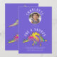 One-a-saurus Dinosaur 1st birthday party purple invitation with photo template for the girl who loves dinosaurs. This cute watercolor stegosaurus and pterodactyl flying dinosaur invite you to a fun dinosaur themed 1st birthday party. Personalize this dinosaur party pink invitation with a photo, the number of the birthday and the party details and you are all set for a fun packed dinosaur themed birthday party. All dinosaur lovers are welcome. Original artwork by Catherine Sweetman