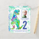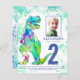 For the boy who’s turning two and who loves dinosaurs. This Roaring T-Rex invites Dino fans to a fun 2nd birthday party. Personalize this colourful watercolor splash blue and green second birthday invitation with a photo of the birthday boy, the number of the birthday and the party details and you are all set for a fun packed dinosaur themed dino birthday. All dinosaur species are welcome. Unique beautiful original artwork by artist Catherine Sweetman