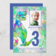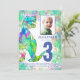 Dinosaur 3rd Birthday Party Photo Blue Invitation