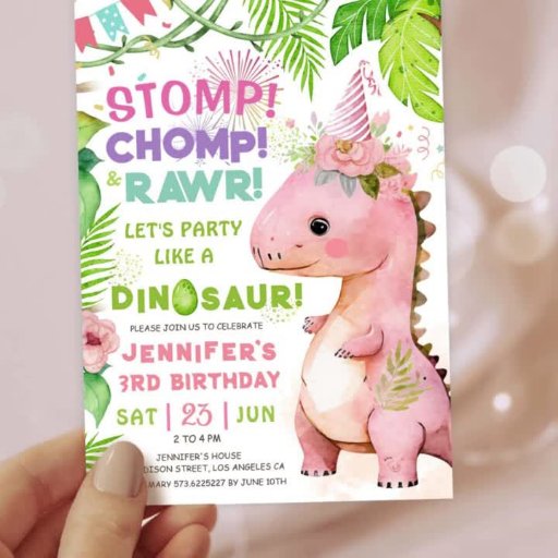 Dinosaur 3rd Birthday Party Pink Dinosaur Girls Invitation