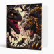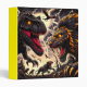 This binder has a scary lion and dinosaur fighting on it.