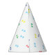 Dinosaur Birthday party Hats, A colourful Dinosaur theme Design with colourful text and Dino's. On this design you have a Dinosaur in yellow and one in purple illustrations, colourful party banner and Dinosaur footprint, unique dinosaur design for a unique party. Matching items in store.