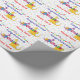 Dinosaur Birthday wrapping paper, A colourful Dinosaur theme Design with colourful text and Dino's. On this design you have a Dinosaur in yellow and one in purple illustrations, colourful party banner and Dinosaur footprint, unique dinosaur design for a unique party. Matching items in store.
