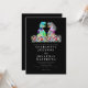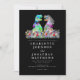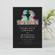 The design includes elegant modern white script typography that’s easy to personalize simply add the bride and groom’s names, wedding date, and all your special details. Set against a sleek black background, this invitation blends whimsical dinosaur art with chic modern style.