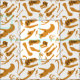 Gold and white Dinosaur bones repeating pattern! Dinosaurs featured in this design include: Tyrannosaurus Rex, Allosaurus, Parasaurolophus, Triceratops, Brachiosaurus, Spinosaurus, and Velociraptor.
