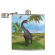 3D digital render of a dinosaur Brachiosaurus on background of blue sky and green palm trees