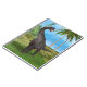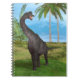 3D digital render of a dinosaur Brachiosaurus on background of blue sky and green palm trees
