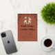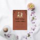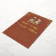 Delight your guests with this funny dinosaur-themed wedding invitation, featuring a charming T-Rex bride and groom in warm brown hues surrounded by lush gold foil jungle foliage. Set against a warm terracotta brown rust background, this bold and modern design is perfect for couples who love dinosaurs and want to add a playful twist to their special day.