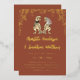 Funny Dinosaur T-Rex bride and groom theme terracotta and gold foil Wedding Invitation Modern dino Jurassic Jungle Theme wedding