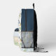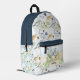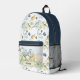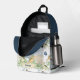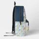 Cute Backpack featuring dinosaurs and footprints surrounded by whimsical plants in blue, green and yellow colours. Easily personalize the name or type a monogram. Great for summer vacation, or as a school bag and more - Kate Eden Art