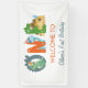 Modern First Birthday Party Dinosaur Welcome banner. Design features number one typography script and dinosaur icons. Personalize with a name.