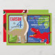 Cute and scary red tyrannosaurus-rex and brontosaurus prehistoric fourth birthday invitation card.