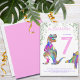 Celebrate the the girl who loves dinosaurs turning 7 with this Roaring pink teal and purple colourful T-Rex and cute stegosaurus inviting Dino fans to a 7th birthday party. Personalize this colourful psychedelic Tyrannosaurus and stegosaurus invitation by adding the name of the birthday girl, the number of the birthday and the party details and you are all set for a fun packed dinosaur pink themed dino birthday. All dinosaur species are welcome. Prehistoric jurassic era Dinosaur illustrations, original artwork by artist by Catherine Sweetman
