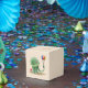 The dinosaur is ready with balloons and a good party atmosphere for the birthday party.