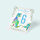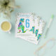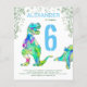 Roaring colourful T-Rex and cute stegosaurus invite Dinosaur fans to a 6th birthday party for dino lovers. Personalize this psychedelic Tyrannosaurus and cute stegosaurus sixth birthday invitation by adding the name of the birthday boy or girl, the number of the birthday and the party details and you are all set for a fun packed dinosaur blue green jungle themed dino birthday. All dinosaur species are welcome. Prehistoric jurassic era Dinosaur illustrations, original artwork by artist by Catherine Sweetman