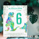 All the dinosaurs are getting ready to celebrate your little T. rex turning six. This Roaring colourful T. Rex and cute stegosaurus invite Dino fans to a prehistoric jungle 6th birthday party for dinosaur lovers. Personalize this Tyrannosaurus and stegosaurus invitation by adding the name of the birthday boy or girl, the number of the birthday and the party details and you are all set for a fun packed Jurassic dinosaur green themed dino birthday party. All dinosaur species are welcome. Prehistoric jurassic era Dinosaur illustrations, original artwork by artist by Catherine Sweetman
