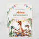 A dinosaur-themed kid's birthday invitation is a cartoon drawing of a group of dinosaurs celebrating a child's birthday. Simple design, bright colours, and a child-friendly style that you can gift to your son or a friend.