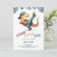 A fun and cute birthday party invitation for boys with a dinosaur theme, featuring a watercolor illustration of a dinosaur in jeans and a cap, in a dance move. Celebrate your wild little one with this stomp, chomp and roar invite that will set the tone for a really wild time in the prehistoric jungle.