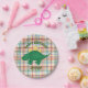 Cute dinosaur themed paper party plates done in a colourful plaid pattern, with cartoon graphics of a green dinosaur. Personalize the custom text for your special event. Matching napkins and paper cups are available.