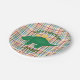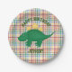 Dinosaur on Colourful Plaid Kids Birthday Party Paper Plate