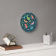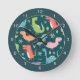 Dinosaur Pattern Blue Monogrammed Kid Boy Round Clock