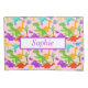 A colourful cartoon dinosaur pattern. Bright and fun prehistoric design with a mix of dinosaurs, T-Rex, Tyrannosaurus Rex, Triceratops, Brontosaurus, Dilophosaurus, Iguanodon, Pteranodon ,Stegosaurus and dino eggs all on a pink background. Great pillowcases ( matching Duvet available) for your child's bedroom. Personalize with the child's name to make this a special gift or bedroom decor for those little girls who love dinosaurs.