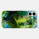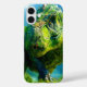 This phone case has a cool green dinosaur on it.